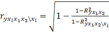 Показатели частной корелляции для первого уравнения вычисляются по формуле