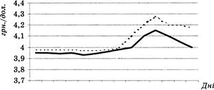 Рис. 1. Динаміка курсу долара США за два тижні місяця
