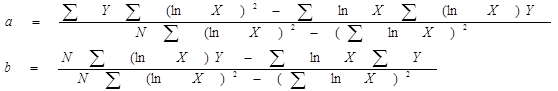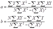 Используем линейную зависимость. Коэффициенты прямой находятся по формулам