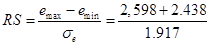г) Соответствие ряда остатков нормальному закону распределения проверяем, используем RS-критерий: