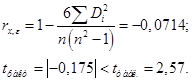 | Ранг Х | Х | I ei I | Ранг еi | Di | D²i | Коэффициент ранговой кореляции определяется по формуле: |