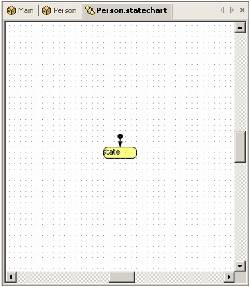 Зададим поведения агента Поведение агента задается визуально с помощью стейтчарта (диаграммы состояний). Для создания откроем структурную диаграмму класса Person, сделав двойной щелчок мышью по элементу Person в окне Проект. Кликнем мышью вначале по кнопке панели инструментов Стейтчарт, а затем по диаграмме. На диаграмме появится значок стейтчарта. Сделаем двойной щелчок мышью по этому значку. Автоматически откроется диаграмма со следующим стейтчартом рис 7.