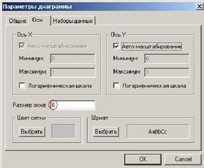 Аналогичным способом добавили переменную root.adopters. Затем изменили параметры диаграммы Подготовили модель к запуску. Выбрали Параметры диаграммы… из контекстного меню. В появившемся диалоговом окне задали временной диапазон диаграммы.