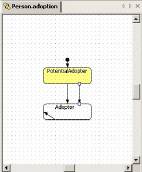 Изменим стейтчарт. Откроем диаграмму стейтчарта adoption, сделав двойной щелчок мышью по элементу adoption в окне Проект. Выделим щелчком мыши внутренний переход состояния Adopter и изменим Действие перехода: