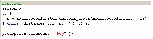Этот переход будет моделировать покупку продукта знакомым этого человека. То, насколько быстро этот владелец продукта сумеет убедить своего знакомого в необходимости покупки, будет зависеть от силы убеждения этого человека и от того, сколько знакомых он встречает за год. Задаем действие перехода.