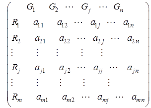 Отже, можна скласти технологічну матрицю, яка повністю описує технологічні можливості виробництва. Позначаємо її через ![]()