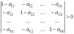 Нехай розглядається матриця коефіцієнтів прямих витрат у натуральному або вартісному виразі