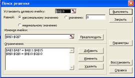 • указатель мыши на кнопку ОК . На экране появится диалоговое окно Поиск решения ;