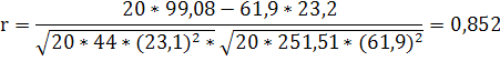 В нашем примере r = 0,852