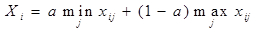 где a- показатель пессимизма-оптимизма, принимающий значения 0£ a£1,