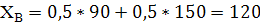 | В | 150 | 150 | 100 | 90 | 100 | 90 | 127,5 |