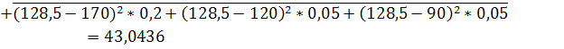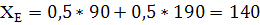 МЕ=190*0,2+90*0,4+100*0,1+170*0,2+120*0,05+90*0,05=128,5