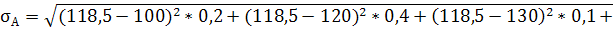 МА=100*0,2+120*0,4+130*0,1+130*0,2+120*0,05+110*0,05=118,5