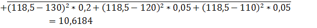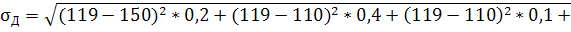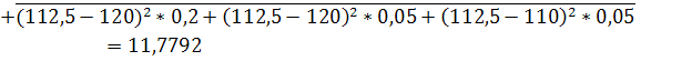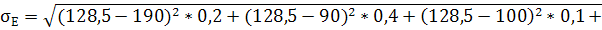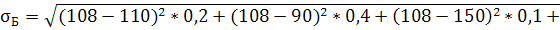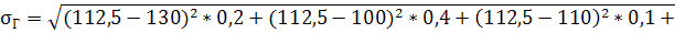 МГ=130*0,2+100*0,4+110*0,1+120*0,2+120*0,05+110*0,05=112,5