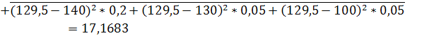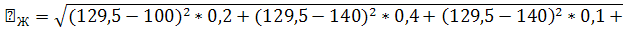 МЖ=100*0,2+140*0,4+140*0,1+140*0,2+130*0,05+100*0,05=129,5