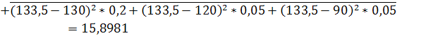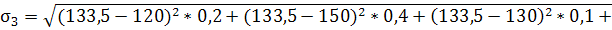 МЗ=120*0,2+150*0,4+130*0,1+130*0,2+120*0,05+90*0,05=133,5