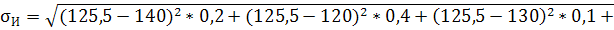 МИ=140*0,2+120*0,4+130*0,1+120*0,2+150*0,05+100*0,05=125,5