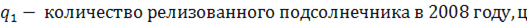 | Количество реализованного подсолнечника, ц |