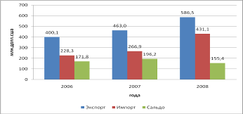 Рис. 1.1. Динамика экспорта-импорта в АР Крым с 2006г. по 2008г.