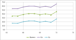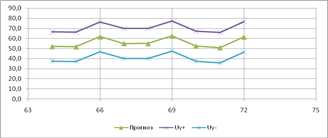 Рис. 3.11. Точечный и интервальный прогноз динамики экспорта товаров АР Крым
