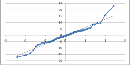 Как видим по рисунку, линия тренда остатков параллельна оси Х, что говорит о нормальности их распределения.