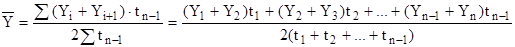 взвешенной (для ряда динамики с неравностоящими уровнями):