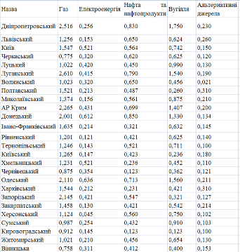 3.1 Моделі аналізу регіонів України за енергоспоживанням