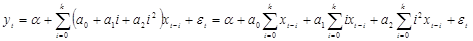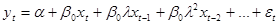 як результат (1.4), модель з кінцевим лагом (1.5) можна записати таким чином: