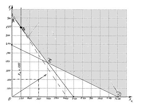Теперь построим вектор исходя из того, что цена на продукты х1-2 руб., а цена на продукт х2-3 руб.