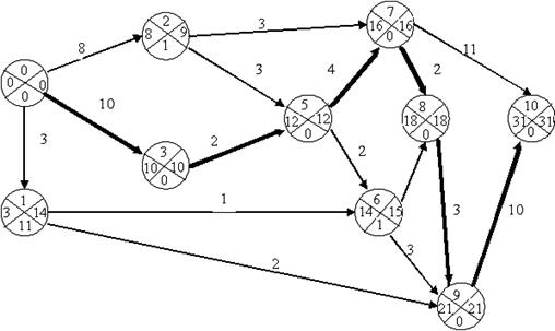 Ранний срок окончания работы равен сумме раннего срока свершения ее начального события и ожидаемой продолжительностью работы;