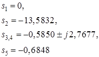 Полюса передаточной функции (полученные стандартными функциями среды Matlab 7.4):
