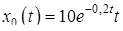 X_o_2 = -2*exp(-1/5*t)*t+10*exp(-1/5*t);