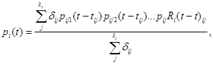 Так, в частности, будет, если все цели разбиваются на непересекающиеся классы k 0 , k 1 ,..., ki таким образом, что предпосылки ij для цели Si из некоторого класса kr ( r =0,1, ...,l ) могут состоять лишь из целей, принадлежащих kp < p <_ r . Для класса k 0 это означает, очевидно, отсутствие каких-либо предпосылок. Зависимость pijr ( t - tij ) определяют исходя из абсолютных оценок вероятности свершения, которые задаются для заземленных событий (класса k 0 ). Данное уравнение для событий этого класса приобретает форму: