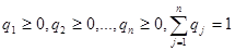 Игрок В использует стратегию В1 с вероятностью q1 , B2 – q2 , …, Bn – qn , причём