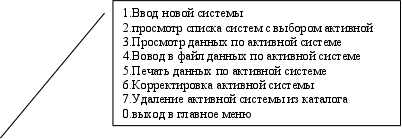 Нажать цифру соответствующую нужному пункту меню | Для дальнейшей работы с программой необходимо либо активизировать уже существующую систему (пункт 2), либо создать новую (пункт 1) |