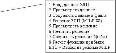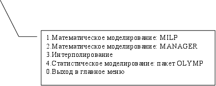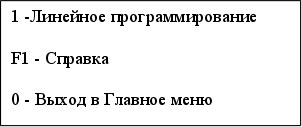При первом вхождении в главное меню существует только два варианта действия: либо ввод исходных данных (пункт 1), либо выход (пункт 0) |