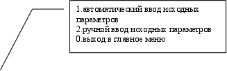 Выбрать пункт Ручной ввод исходных параметров | В отличие от режима автоматического ввода ввод данных осуществляется вручную. Работа с режимом аналогична пунктам 5.1.-5.14. |