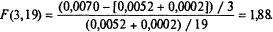 При оцінюванні функції попиту на продукти харчування з використанням спостережень за 1959-1979 рр. як період вибірки, а за 1980-1983 рр. – як період прогнозу, суми квадратів відхилень для періоду вибірки, періоду прогнозу і суміщеного періоду дорівнювали 0,0052; 0,0002 і 0,0070 відповідно. Оцінка окремих рівнянь регресії для двох періодів призводить до втрати трьох мір свободи, і число мір свободи, що залишається після оцінювання шести параметрів (двох постійних членів, двох коефіцієнтів при logx, двох коефіцієнтів при logp), рівне 19. У результаті ми одержуємо наступну F-статистику, розподілену з 3 і 19 мірами свободи: