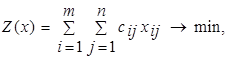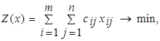 удовлетворяющее системе ограничений (1.2), (1.3), условиям неотрицательности (1.4) и обеспечивающее минимум целевой функции (1.1).