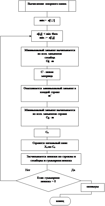 блок - схема общего алгоритма вычисления опорного плана представлена на рисунке 2.2;