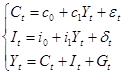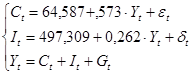 Задачей исследования является идентификация двухшаговым методом наименьших квадратов упрощенной модели Клейна (т.е. нахождение оценок коэффициентов