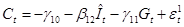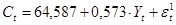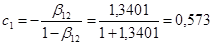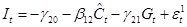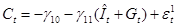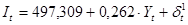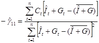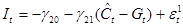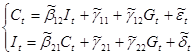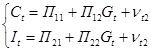 На первом шаге установим регрессионную зависимость эндогенных переменных ( C , I ) от предопределенных переменных. Предварительно необходимо преобразовать модель от расширенной формы к структурной (2), а затем к приведенной (3):
