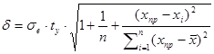 , где δ для точки прогноза – δ (х=17,02) = 11,27 т.е. доверительный интервал для хпр
