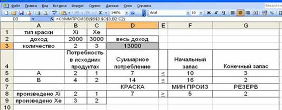 Решим данную задачу с помощью команды Сервис - Поиск решения Excel. Средство поиска решений является одной из надстроек Excel. Если в меню Сервис отсутствует команда Поиск решения, то для ее установки необходимо выполнить команду Сервис, Надстройки, Поиск решения.