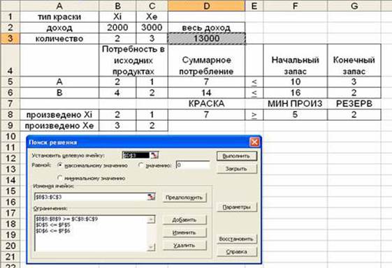 Хi — суточный объем производства краски I и Хе — суточный объем производства краски Е .