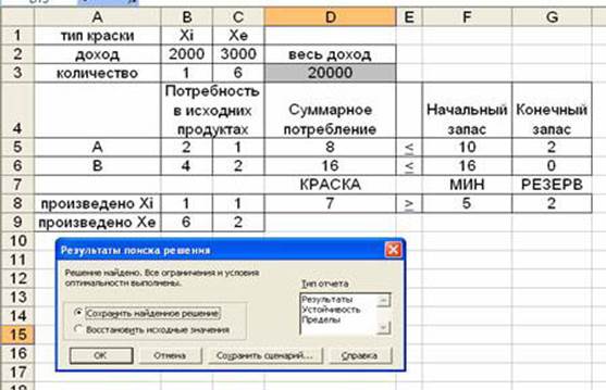 Для того чтобы получить максимальный доход надо произвести краски І 1 т., а краски Е 6 т.