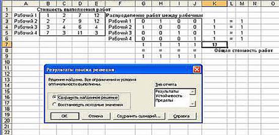 Пусть переменная xij= 1, если i-м рабочим выполняется j-я работа, и хij= 0, если i-м рабочим не выполняется j-я работа. Тогда модель имеет следующий вид: