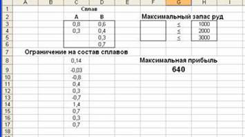 Характеристики и запасы руд в задаче об определении состава сплавов