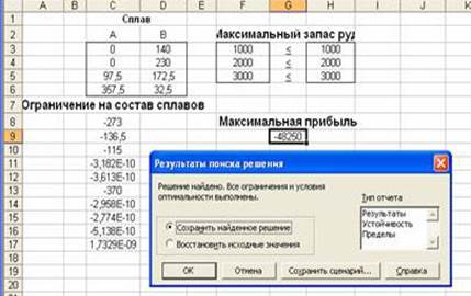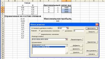 при ограничениях на состав сплавов (на основании данных из табл.):