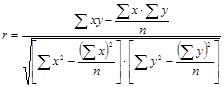 В случае прямолинейной формы связи между изучаемыми показателями коэффициент корреляции рассчитывается по формуле: